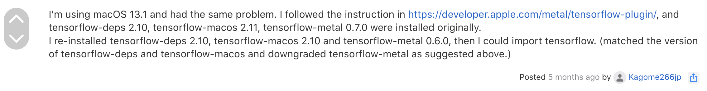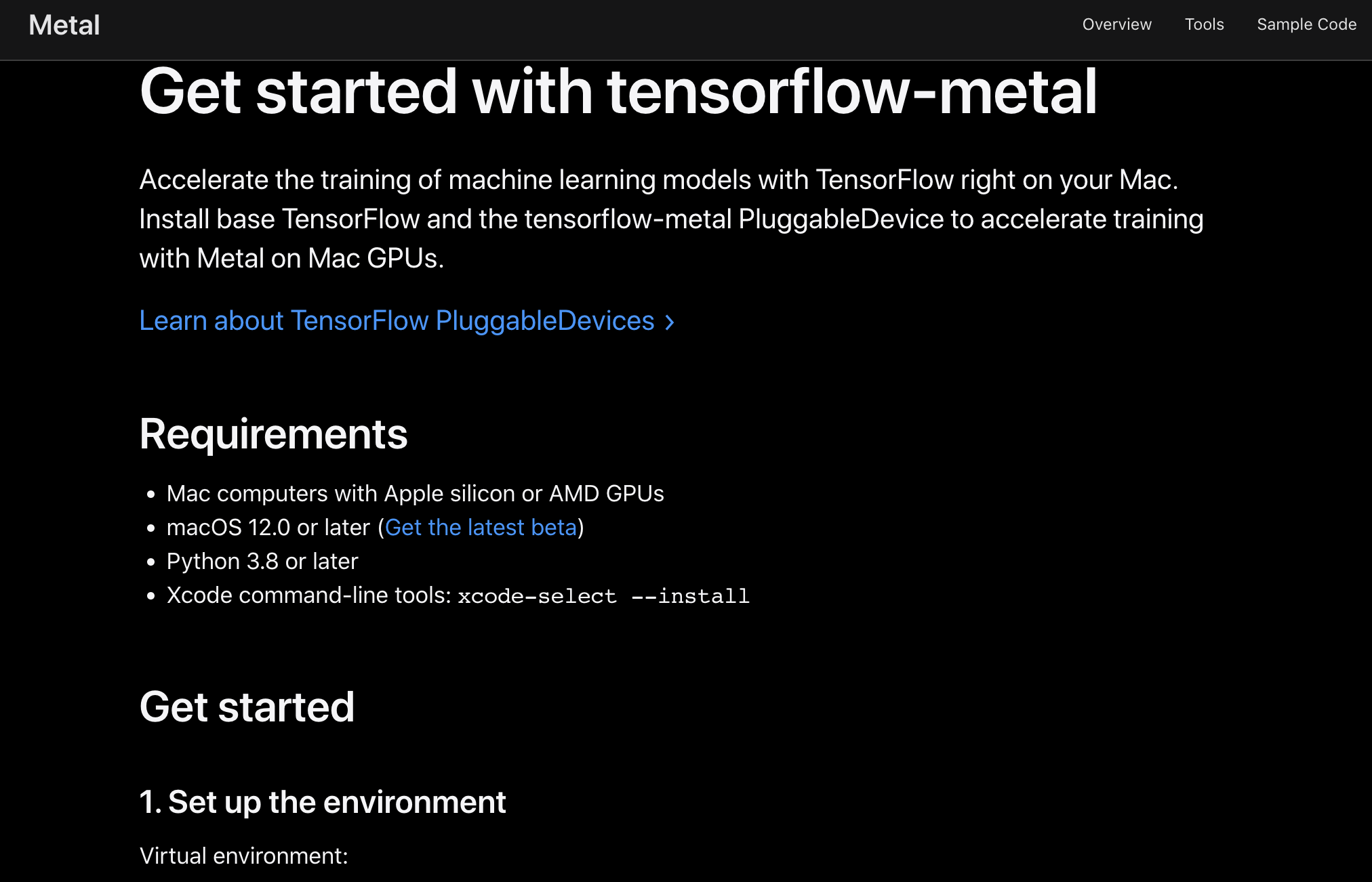 $ python -m pip install tensorflow-metal==0.6.0
